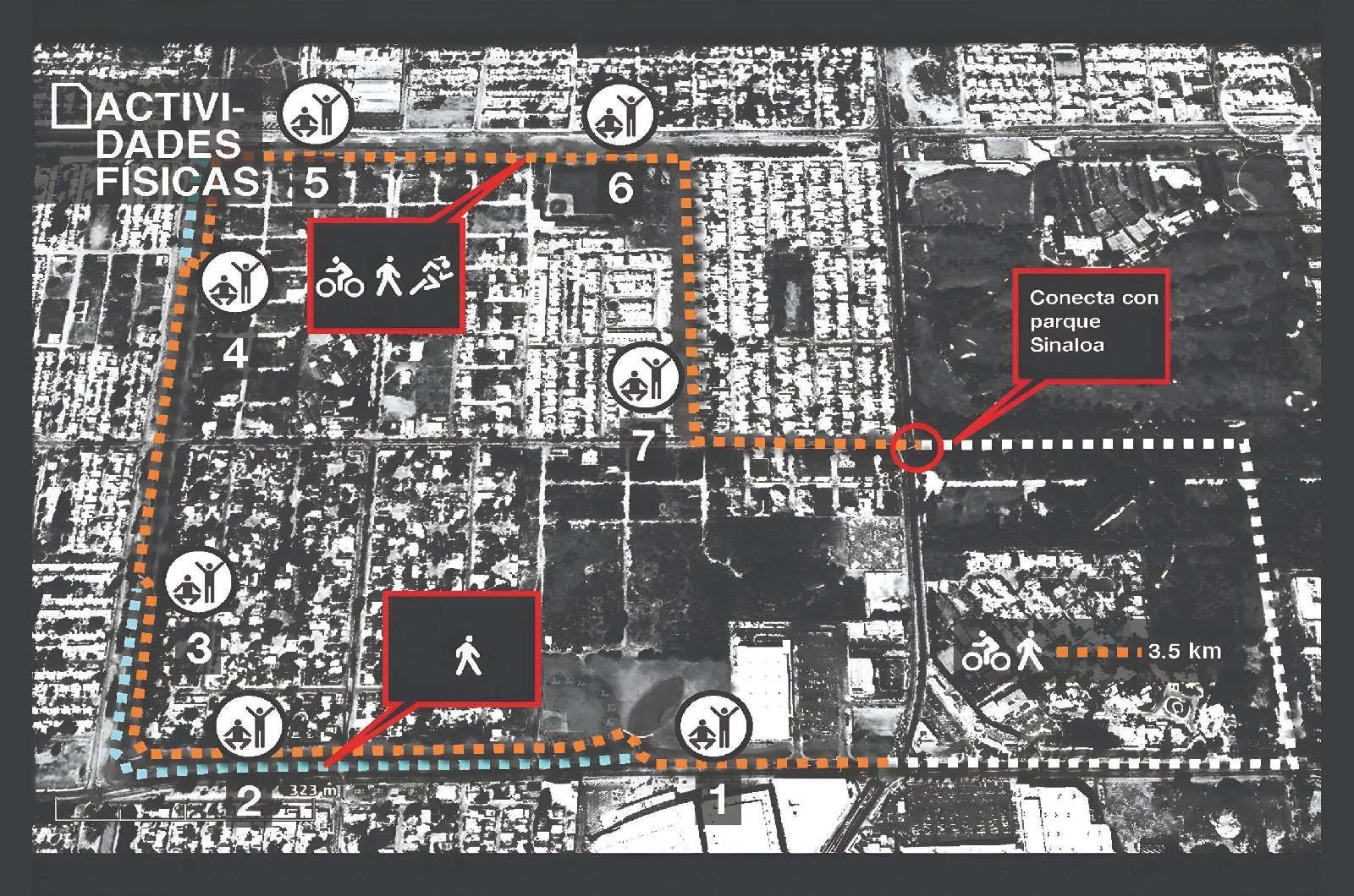 Se requiere un parque que integre un almacén para 150 bicicletas, un taller para su mantenimiento, baños para hombres y mujeres, así como la unión del mismo al proyecto del corredor deportivo y red de ciclo vías que ya se había iniciado en la zona.