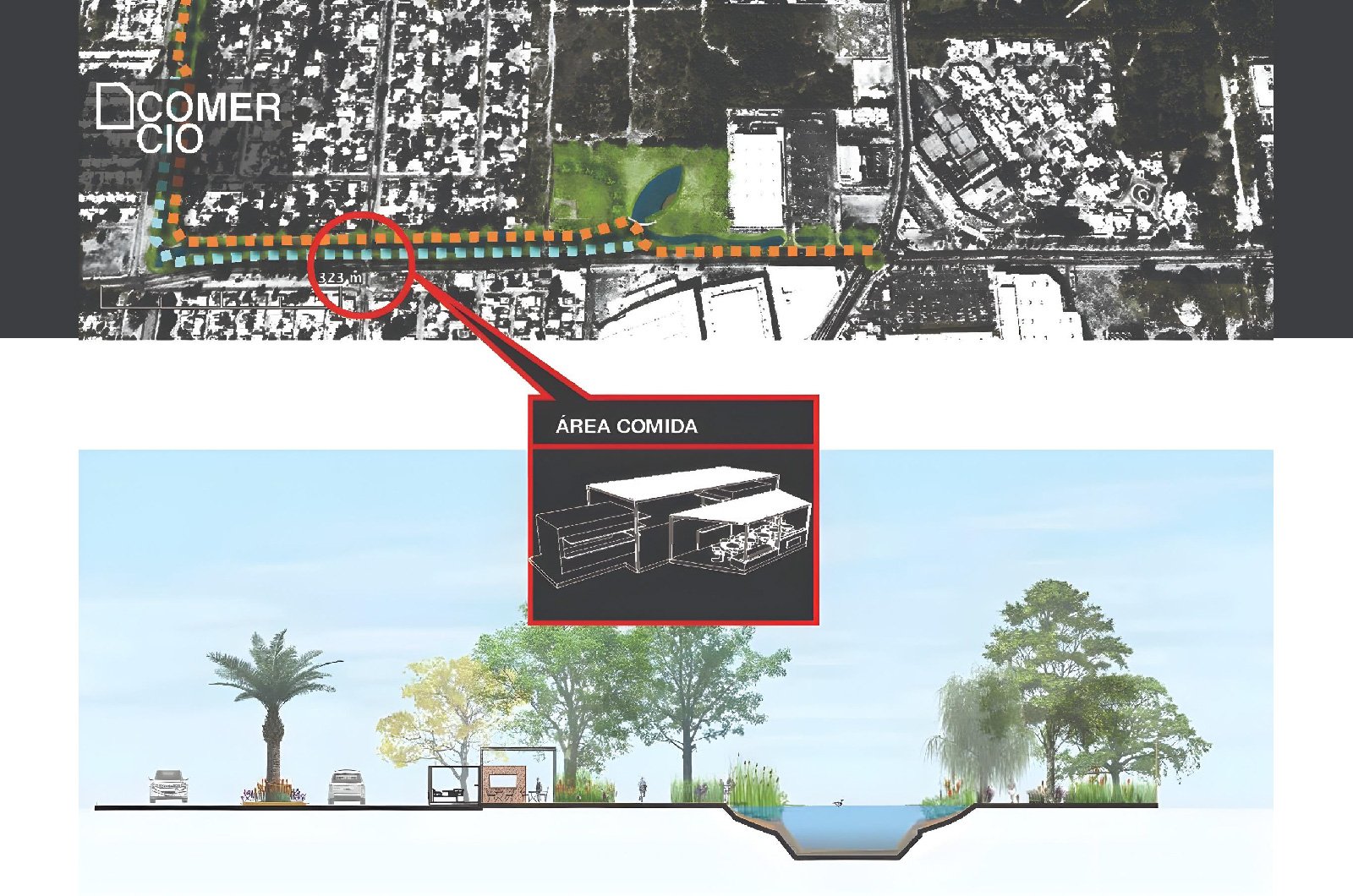 As an sustainability strategy we propose a commercial space to support the place and keep in good condition with surveillance and service all together.