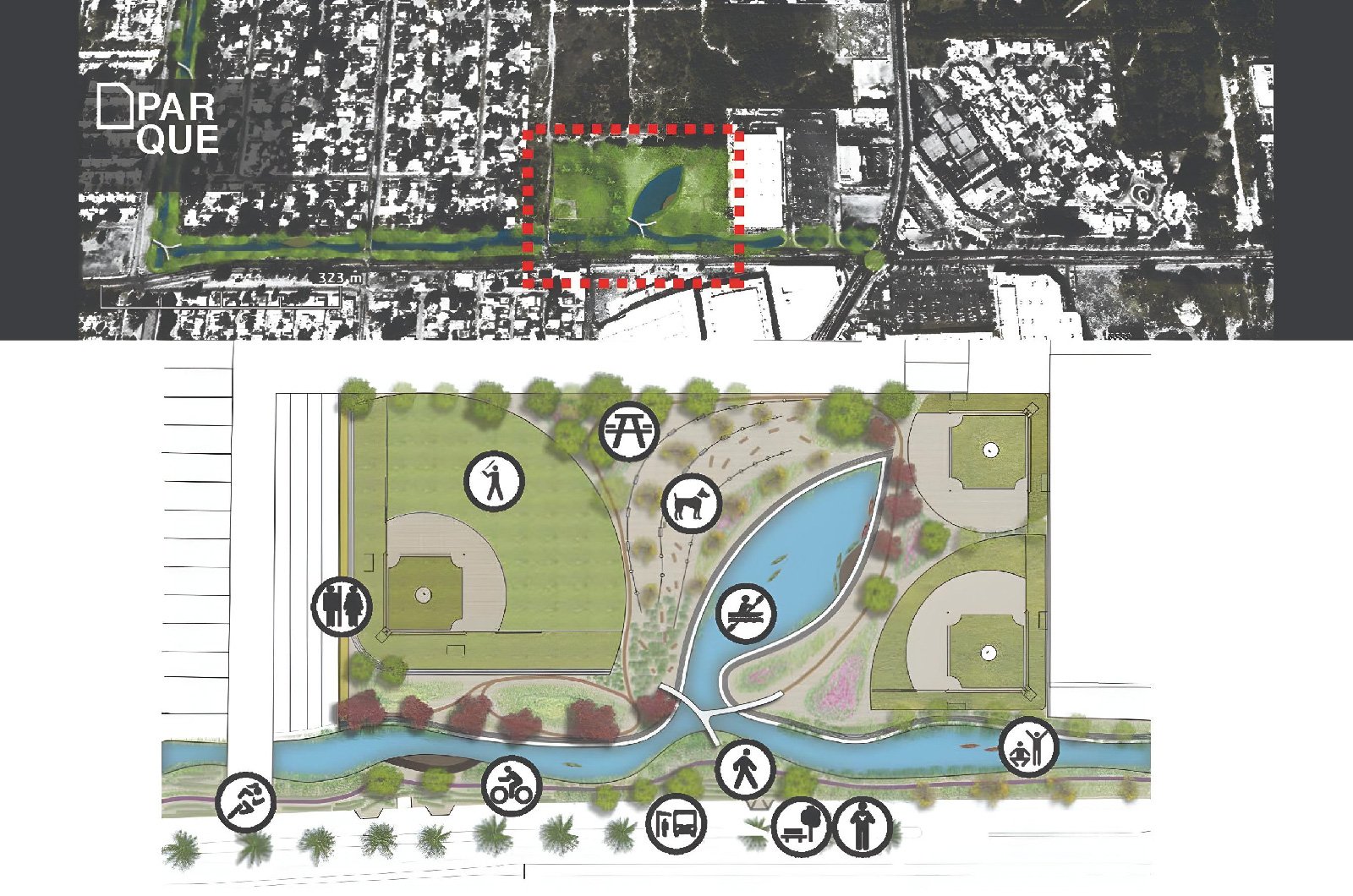 El parque lineal busca conectar a la comunidad con la naturaleza y al habitante con su naturaleza humana, promoviendo la sana convivencia y altos estándares de calidad de vida.