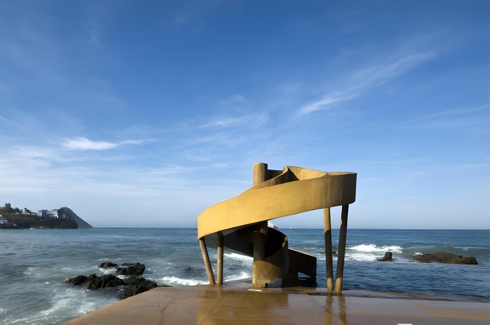 Con la nueva administración municipal se nos invita como equipo proactivo que propone mejorar la ciudad, a hacer una propuesta para este espacio público. Se propone reutilizar, limpiar y volver a su esplendor la alberca alimentada por el agua de las mareas. También proponemos un elemento lúdico que le de activación social y atraiga a niños y familias de la zona: un tobogán, que con un diseño singular sea al mismo tiempo una escultura que crea un hito frente al mar. Al centro de este se propone un generador de energía eólico, que provee de energía eléctrica al sitio y que es un elemento que pretende generar conciencia hacia el uso de energías renovables.
