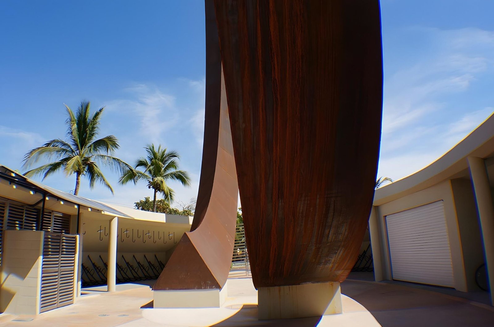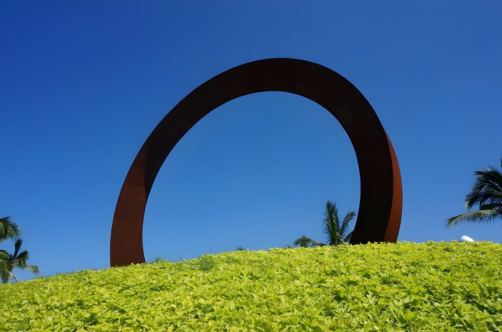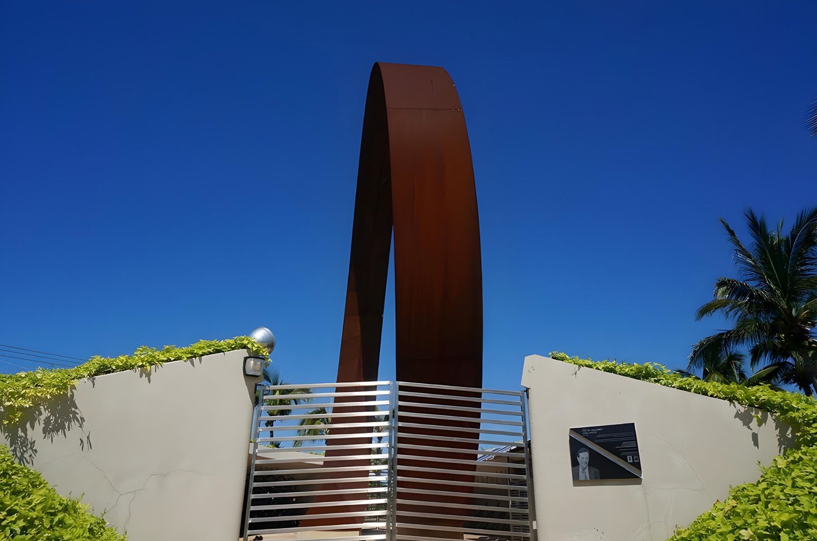 El material del que esta hecha esta escultura es Acero Cor-ten, una aleación de metales planeado para eliminar la necesidad de pintura o mantenimiento, se desarrolla sobre su superficie una capa de oxido que la auto sella protegiéndola de que la corrosión continúe.